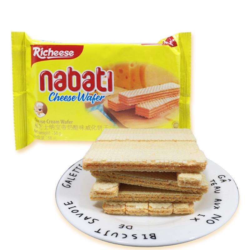 进口零食 印尼丽芝士纳宝帝 奶酪威化饼干58g 饼干办公室休闲食品