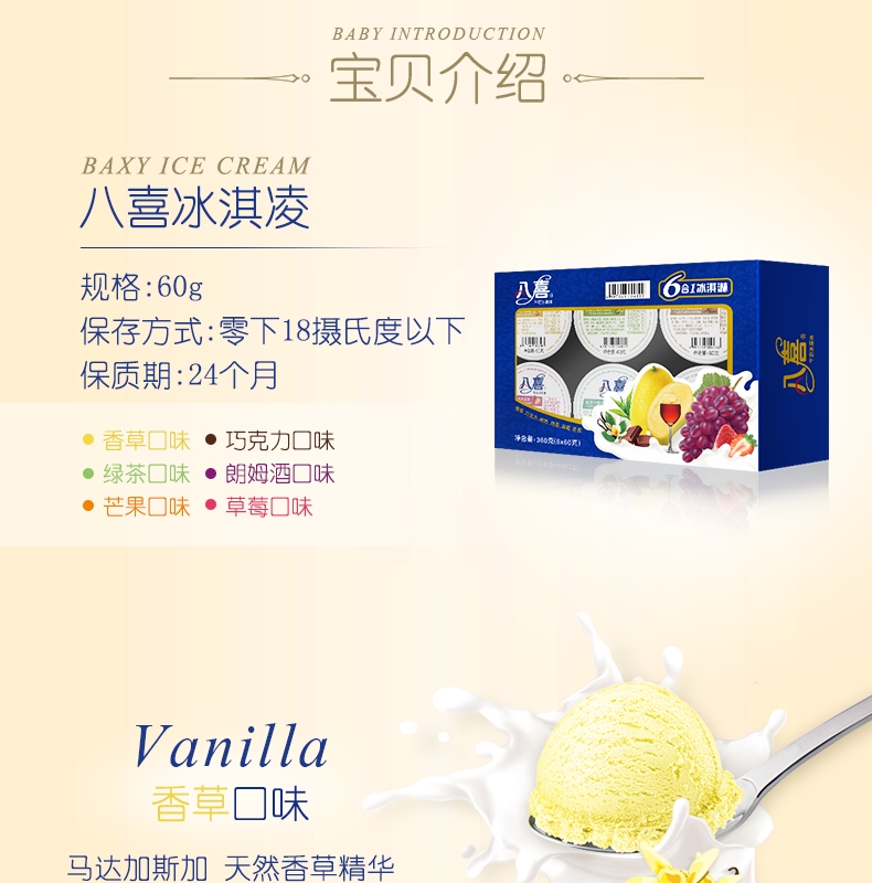 • 商品名称:八喜冰淇淋60g*18杯经典六...