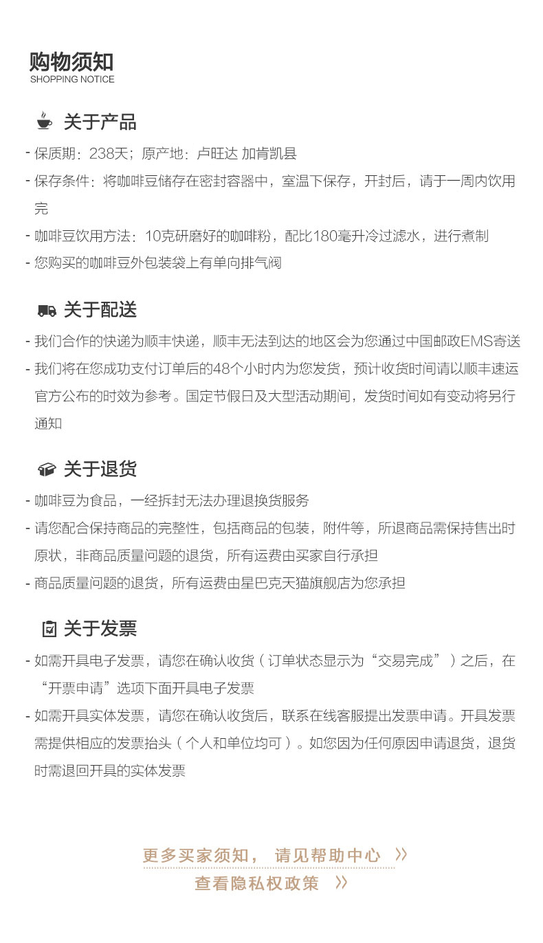零食特产、酒水饮料 > 咖啡 > ★甄选系列 - 卢旺达穆洪多袋装咖啡豆(250g)