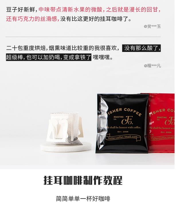 零食特产、酒水饮料 > 咖啡 > FISHER有啥喝啥精品挂耳咖啡20包组合系列 滤挂式现磨黑咖啡