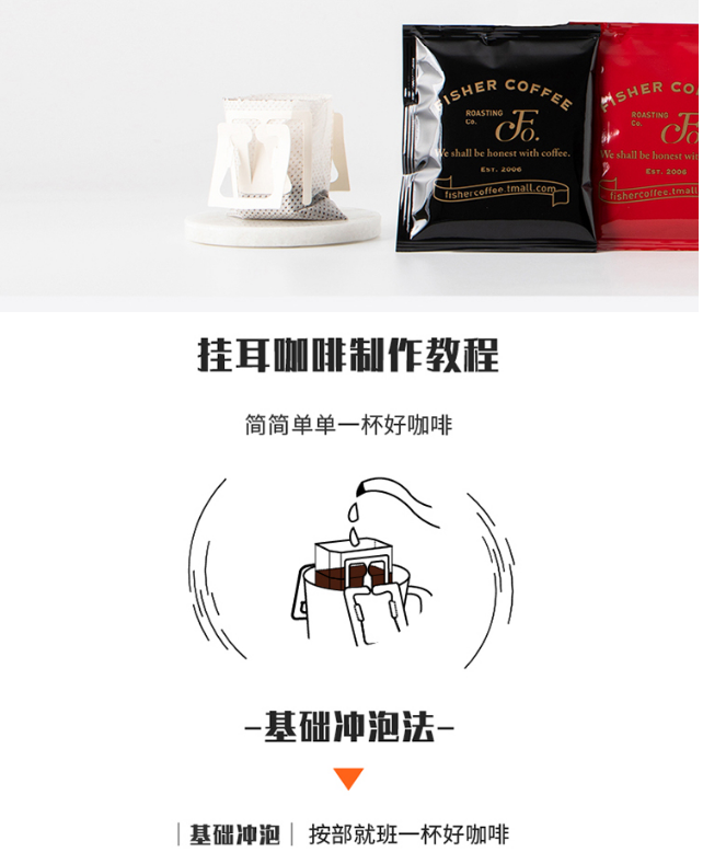 零食特产、酒水饮料 > 咖啡 > FISHER醇厚低酸精品挂耳咖啡20包/单品系列 深度烘焙滤挂黑咖啡粉