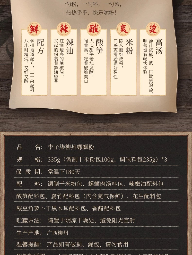 李子柒螺蛳粉广西特产柳州螺丝粉速食方便面米线螺狮粉3袋装