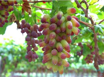我们将三亚新鲜的葡萄摘下来以后装入我们的包装盒内,一盒包装里面有40颗小葡萄用来吃的