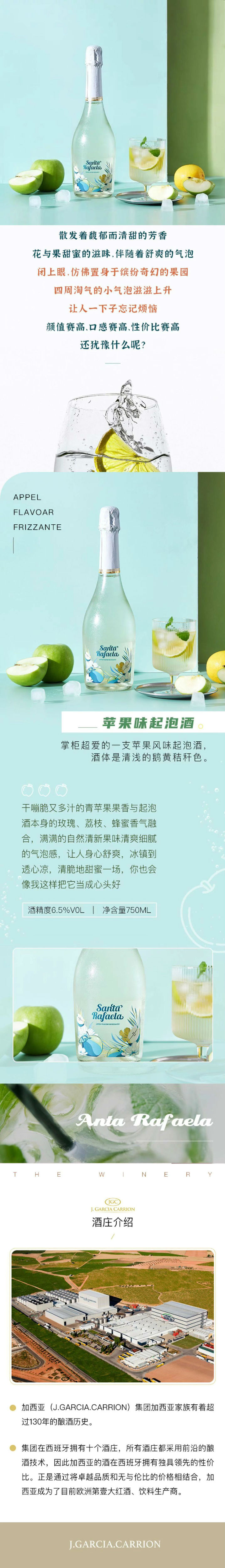 干嘣脆又多汁的青苹果果香与起泡酒本身的玫瑰、荔枝、蜂蜜香气融合,