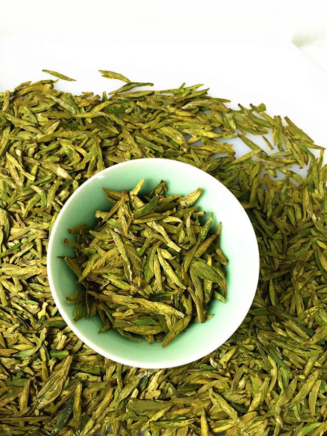 西湖龙井茶,外形扁平挺秀,色泽绿翠,内质清香味醇,泡在杯中,芽叶色绿。素以"色绿、香郁、味甘、形美"四绝称著。