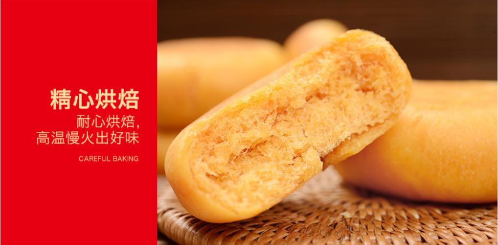 肉松饼是用肉松、小麦粉、绿豆、鸡蛋、白糖作为主要原料制作的一道小吃。具有入口即溶 酥脆香口的特色。如今,肉松饼被人们当作零食来享用,甚至引领了小零食界的潮流。肉松饼是闽台民间的一款传统食品