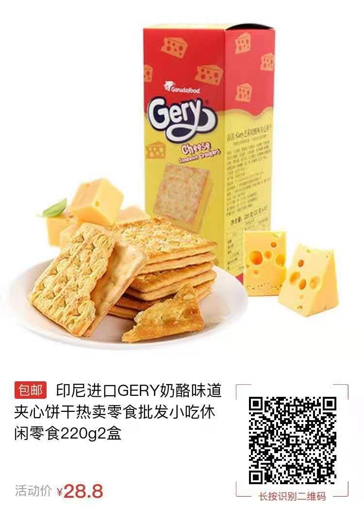 【名 称】印度尼西亚芝莉gery奶酪味夹心饼干220g