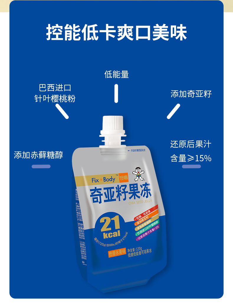 零食特产、酒水饮料 > 果蔬饮品 > 买二送一旺旺fixxbody奇亚籽果冻120g*6包低能量果汁代餐轻食