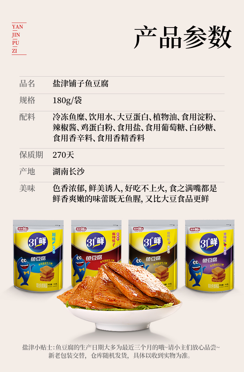 • 商品名称:盐津铺子鱼豆腐小零食31度...