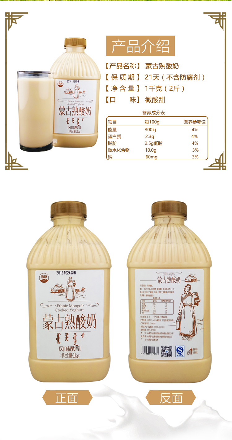 内蒙古特色雪原牌熟酸奶和酸牛乳