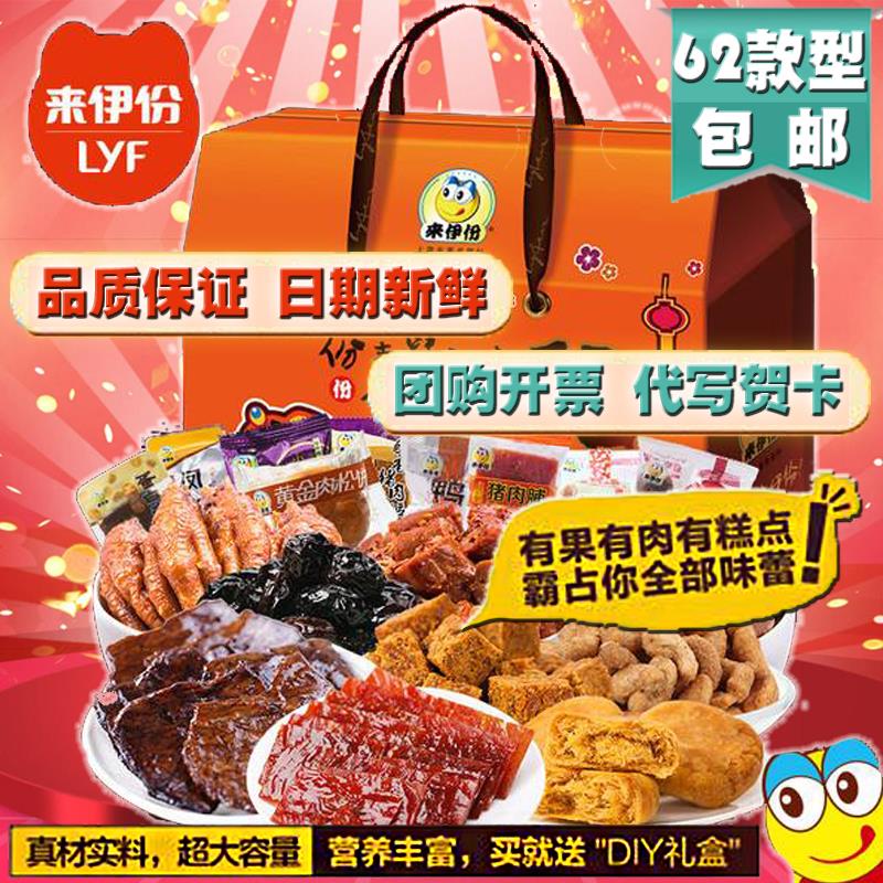 零食特产、酒水饮料 > 熟食 > 来伊份包装上海来一份62款礼盒食品蜜饯年货组合礼包包邮写贺卡