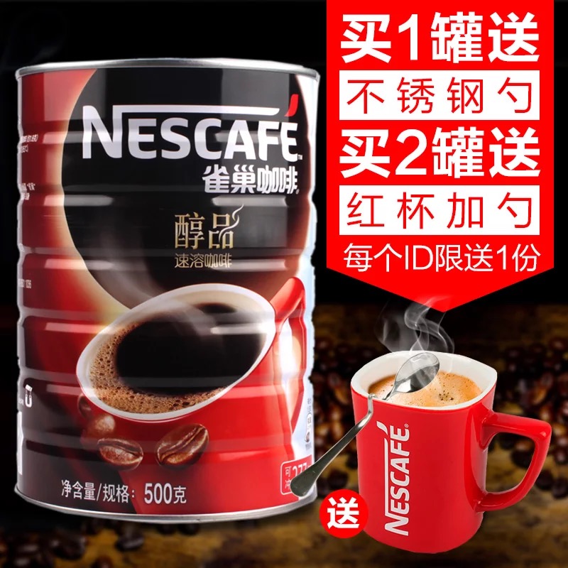 送好礼雀巢咖啡粉醇品速溶咖啡500g罐装无蔗糖无伴侣黑咖啡纯咖啡,送咖啡杯和勺子
