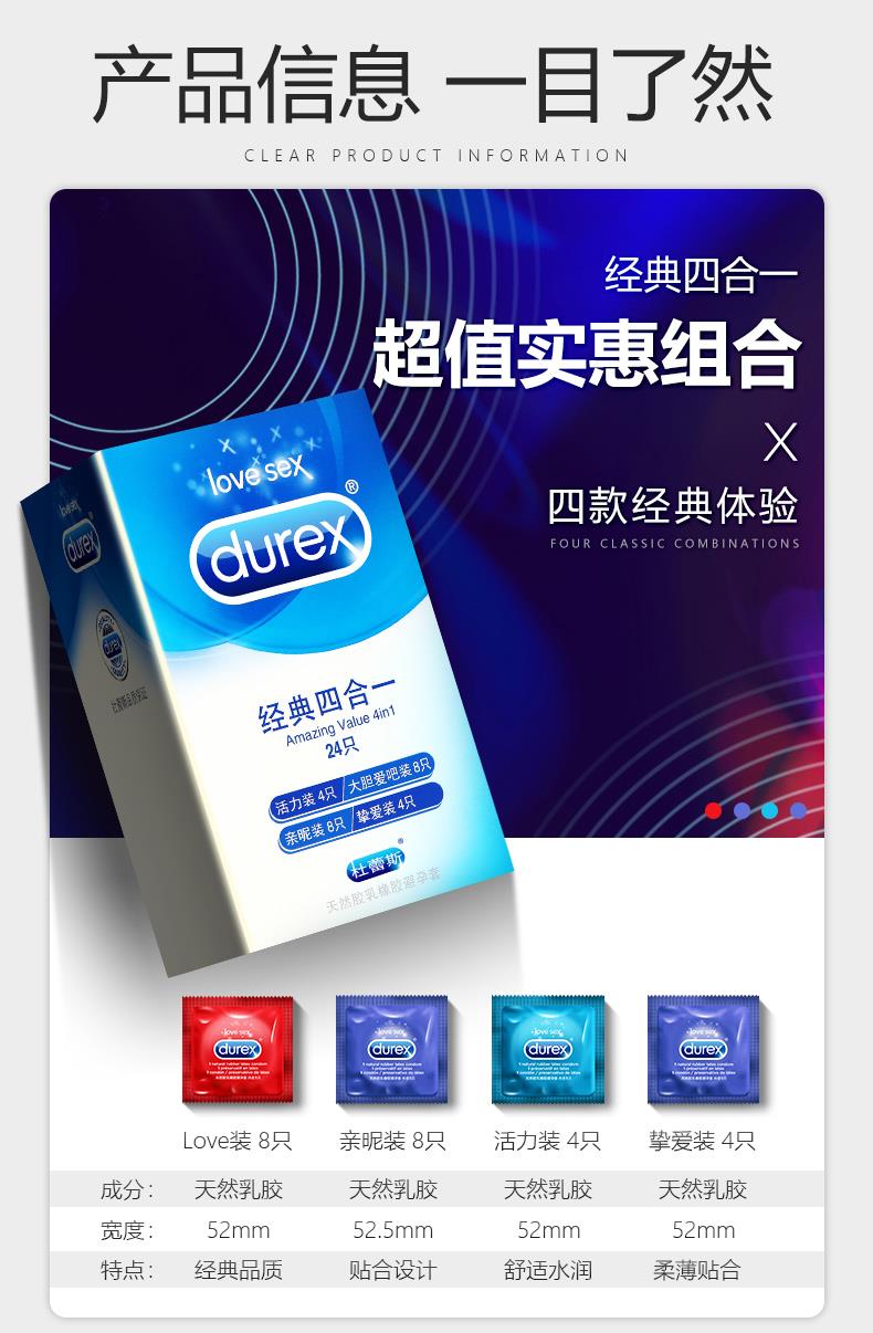 颜色分类: 量贩组合【42只】活力装12只+经典四合一24只+润薄2*2盒+紧薄2只 活力大胆爱【26只】活力装12只+LOVE装10只+亲昵4只 活力涌动【24只】活力装12+活力装8只+激情装4只 超薄升级【30只】活力装12只+水润超薄三合一16只+润薄2只 活力入门【19只】活力装12只+LOVE装3只+亲昵装4只 颗粒螺纹【19只】活力装12只+凸点螺纹装3只+螺纹2只*2盒 活力进阶【19只】活力装12只+活力装3只+激情装4只 持久尝鲜【16只】活力装12只+持久装3只+持久装1只 活力超薄【22只】活力装12只+超薄装8只+紧薄2只 001超薄【16只】活力装12+001/3只+AiR空气套1只 活力情趣【32只】活力装12只+魔法情趣装18只+螺纹装2只 持久升级【19只】活力装12只+超薄持久6只+经典持久装1只