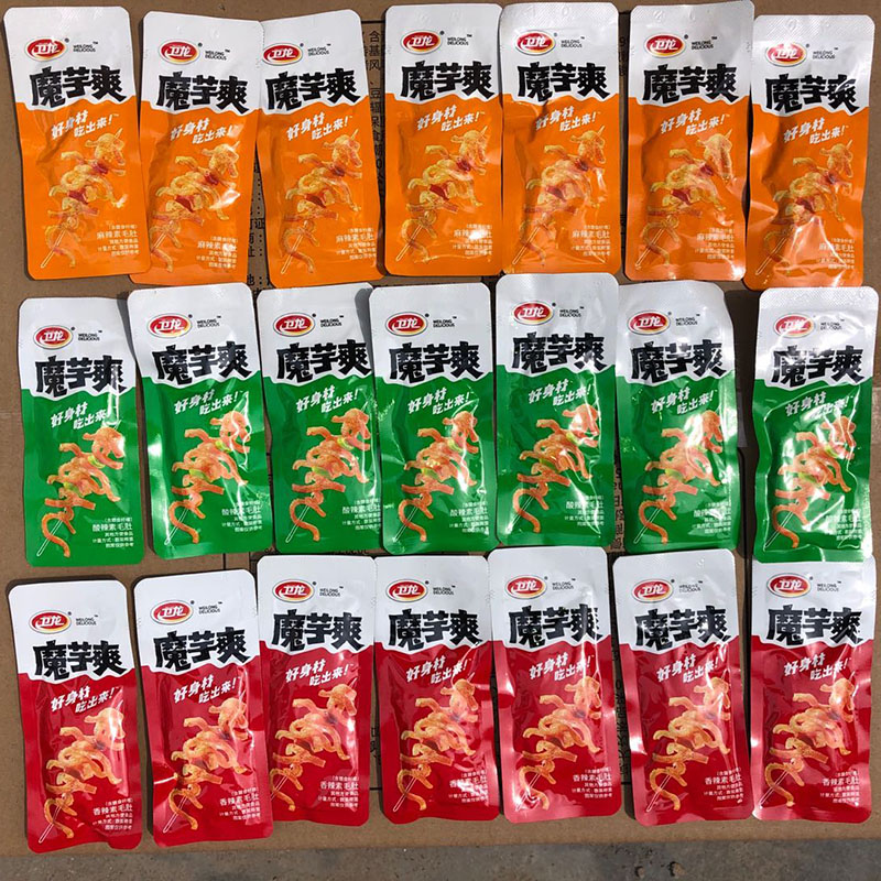 零食特产、酒水饮料 > 熟食 > 卫龙魔芋爽素毛肚整箱3盒60包麻辣香辣酸辣魔芋丝辣条零素食包邮