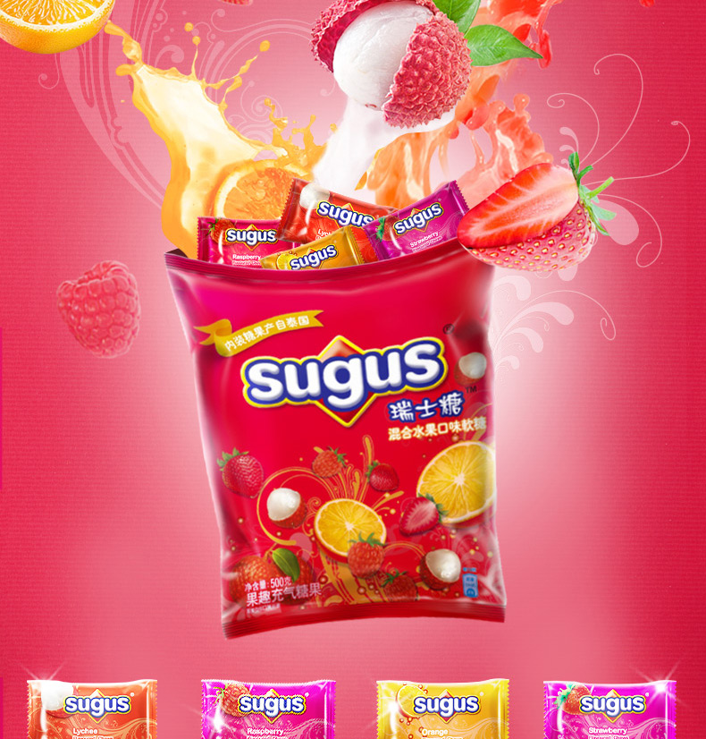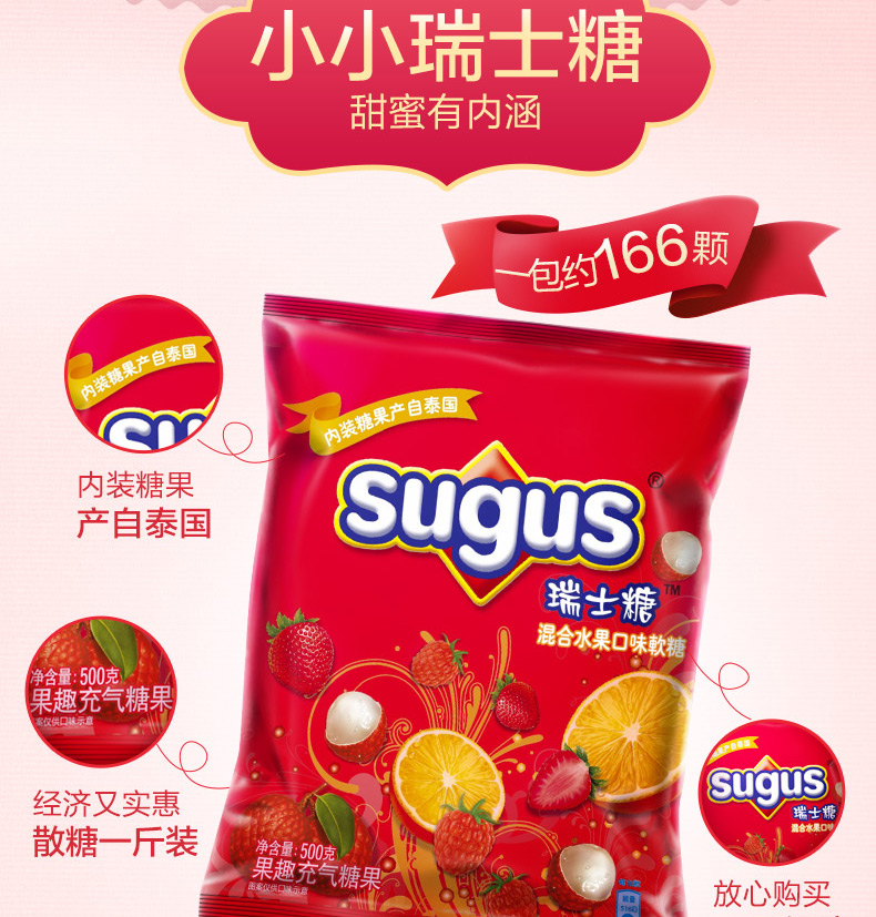 零食特产、酒水饮料 > 糖果 > Sugus瑞士糖混合水果味软糖500g礼包送礼婚庆喜糖果儿童零食年货