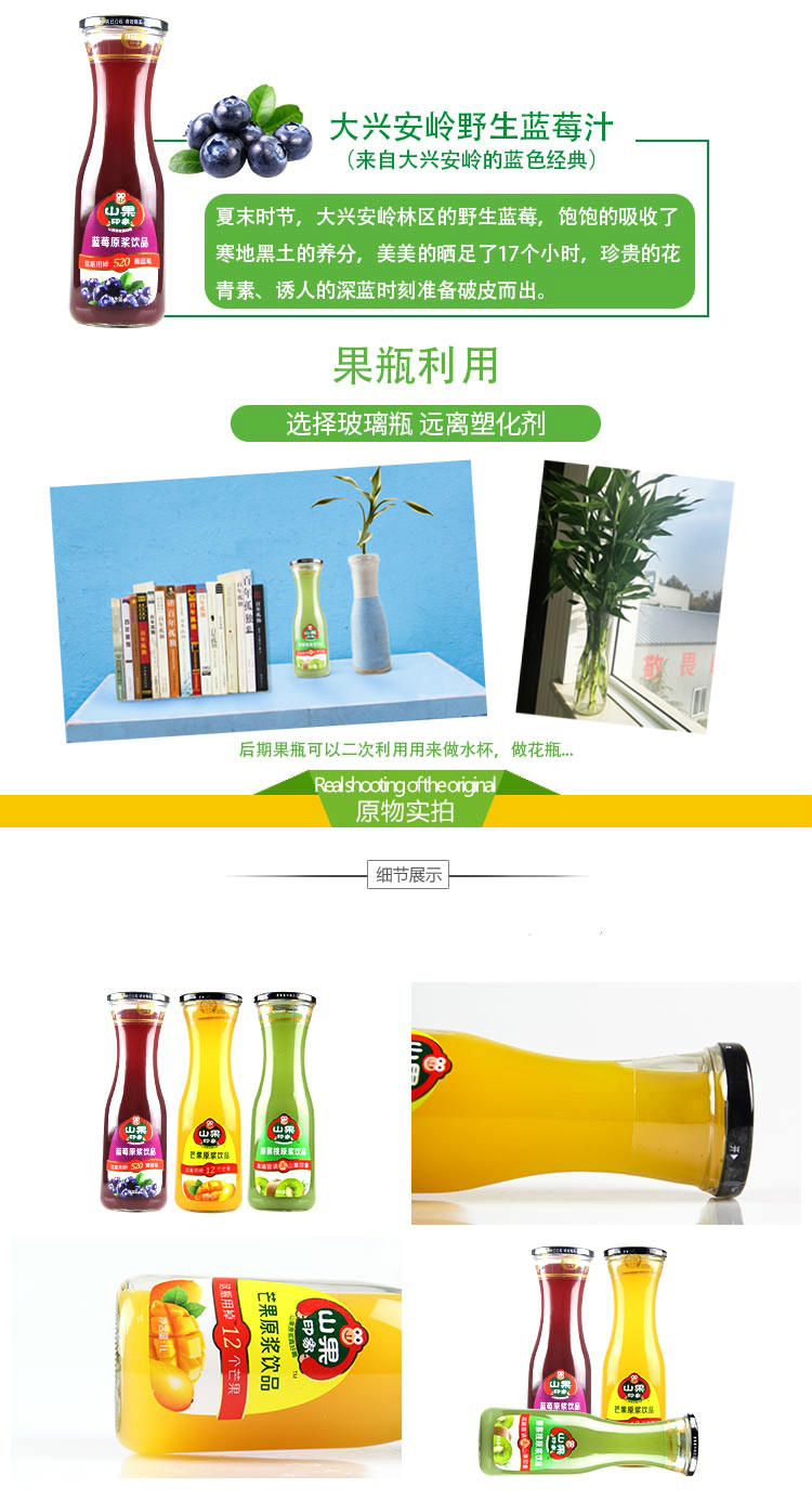 零食特产、酒水饮料 > 果蔬饮品 > 山果印象大瓶芒果猕猴桃蓝莓汁山楂1L花瓶宴会玻璃瓶果汁婚宴饮料