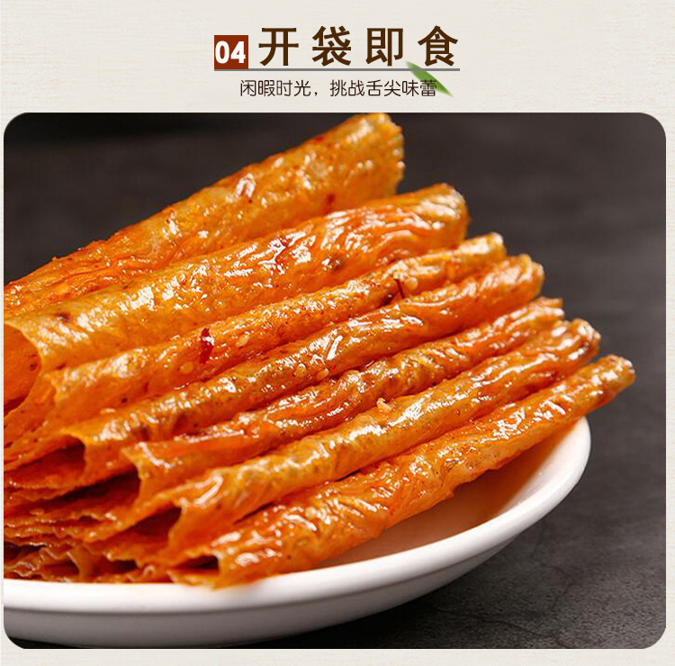 零食特产、酒水饮料 > 熟食 > 源氏 网红休闲零食 老式大辣片 辣条豆干豆皮 200g