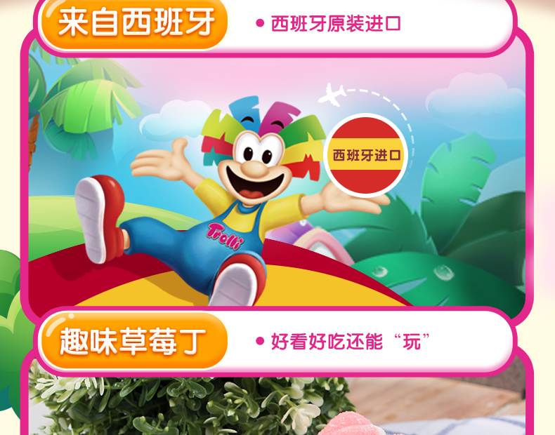 零食特产、酒水饮料 > 糖果 > 德国进口Trolli口力果汁糖草莓丁造型糖