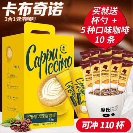 零食特产、酒水饮料 > 咖啡 > 摩氏咖啡 意式咖啡粉 特浓提神速溶咖啡 卡布奇诺咖啡速溶100条装