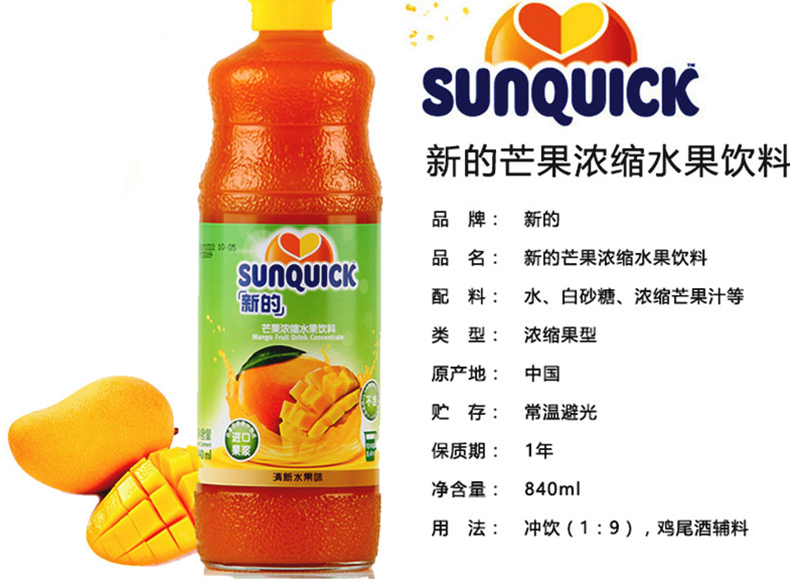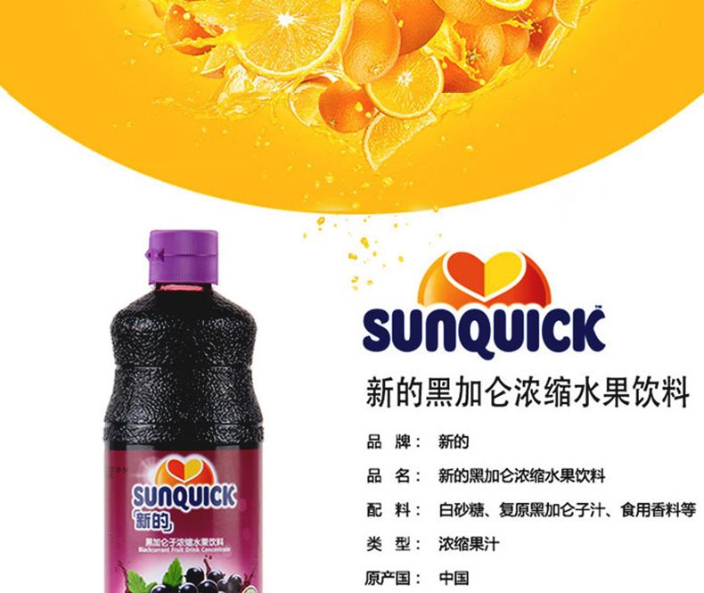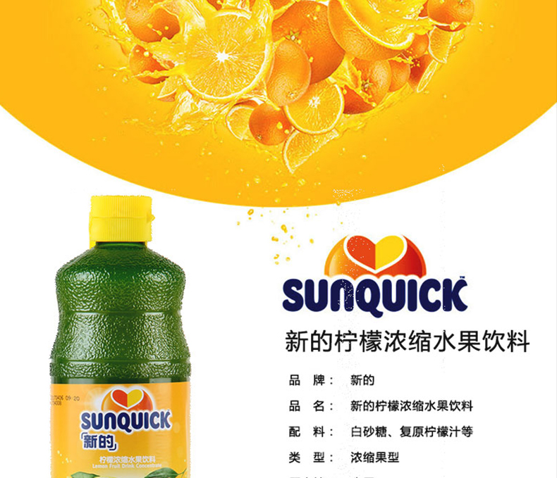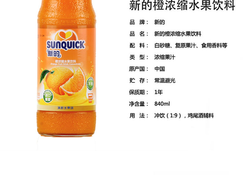 食品添加剂: 无 产品名称: Sunquick/新的 橙浓缩水果饮料 品牌: Sunquick/新的