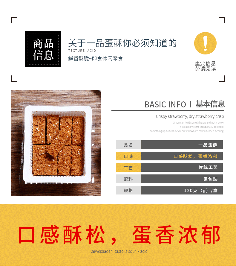 • 商品名称:一品蛋酥120g*2黄金鸡蛋酥...