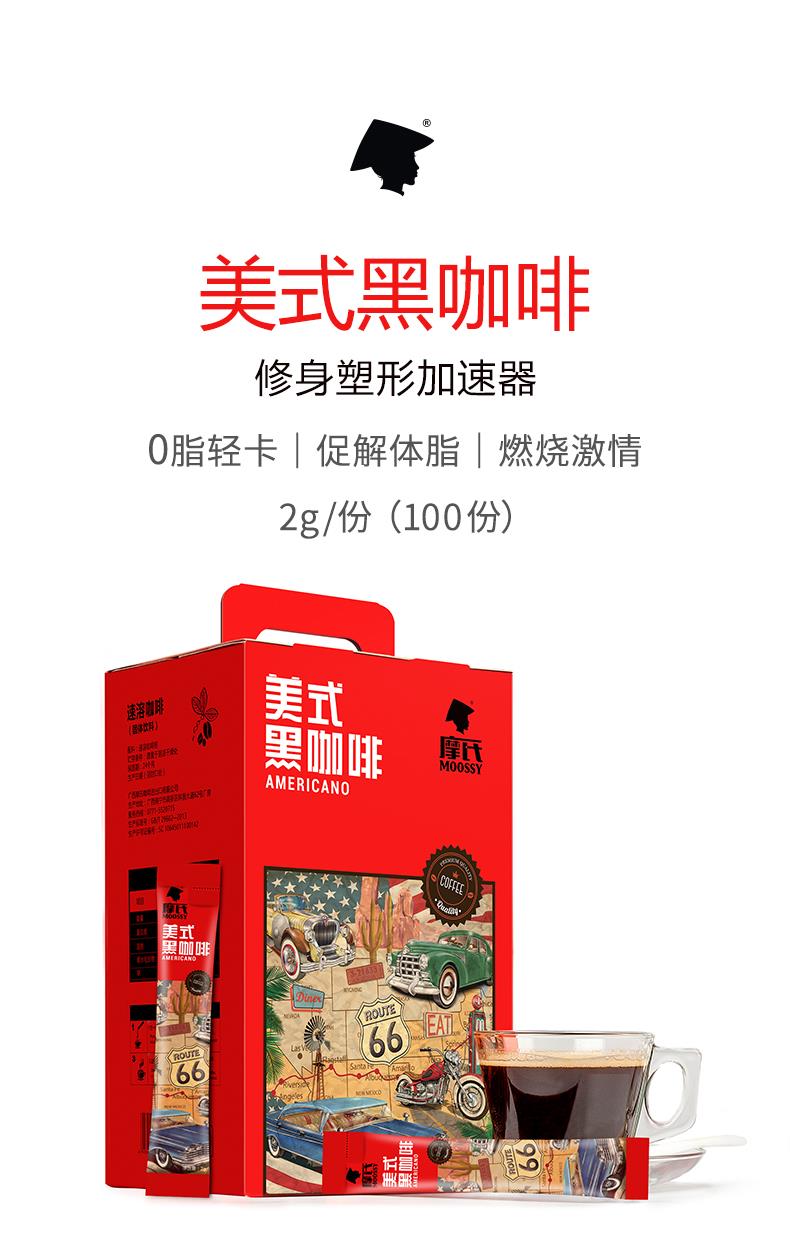 摩氏美式咖啡 黑咖啡纯咖啡无蔗糖提神健身咖啡粉速溶咖啡100条装