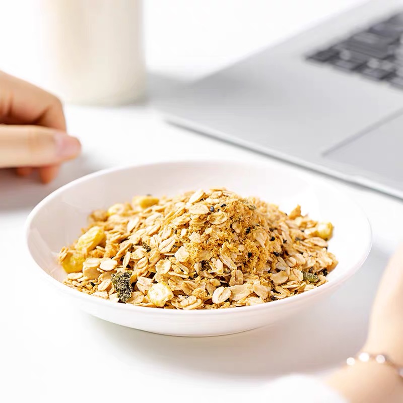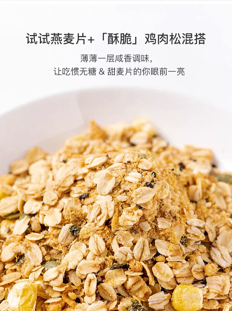 烤出来的咸香麦片,麦片加鸡肉松的酥脆搭配,让吃惯甜麦片的眼前一亮