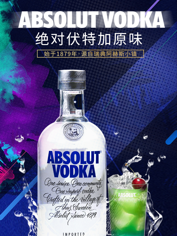 零食特产、酒水饮料 > 葡萄酒 > Absolut伏特加原味700ml 瑞典进口烈酒洋酒