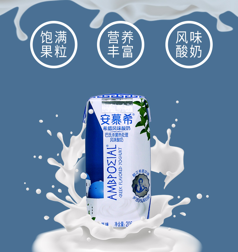 伊利安慕希引入希腊酸奶,旨在为人们带来更多营养与浓醇享受。而相比其它高端常温酸奶,伊利“安慕希”也具有明显的特色。来源于希腊的“Ambrosial”,更添加了希腊雅典农业最新研制的菌种,具有浓郁的口感和更多的蛋白质,比普通酸奶高出蛋白质35%,最长保质期六个月。