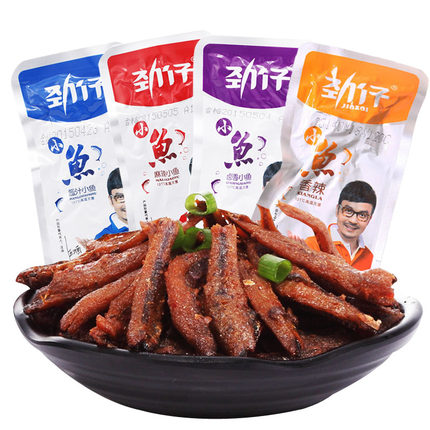 劲仔深海小鱼:源起于湖湘名菜火焙鱼,但原材料从河鱼升级为深海小鱼,去头去尾去内脏和杂质,经酱卤成风味小鱼零食。