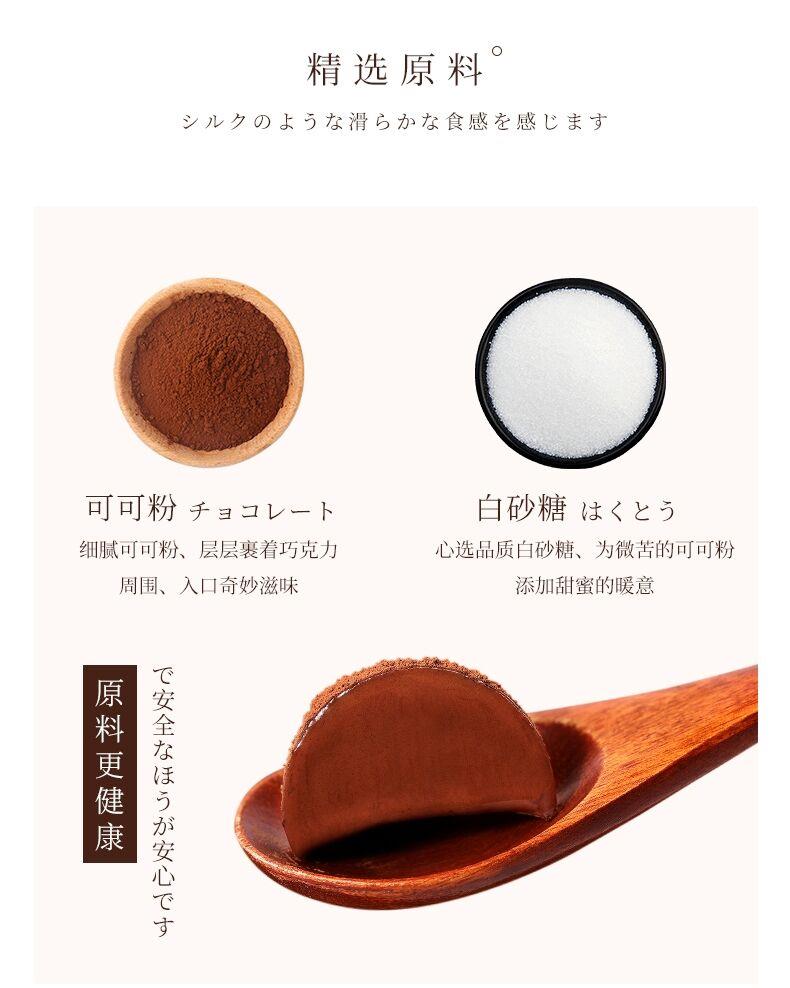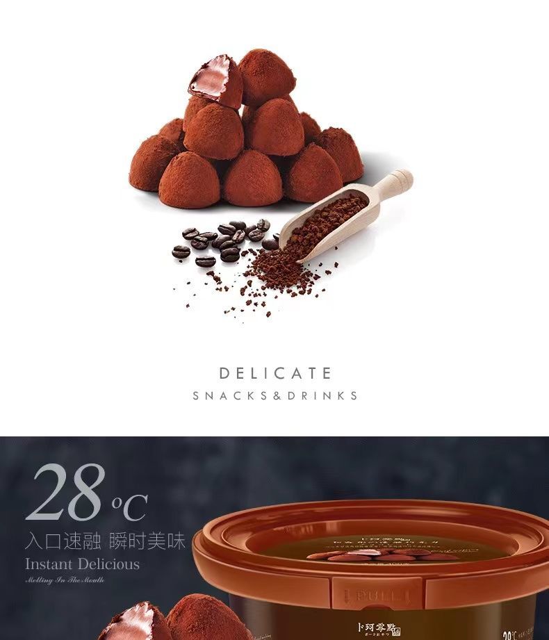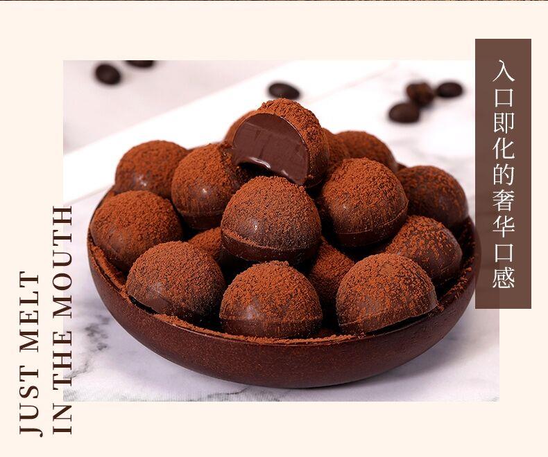 松露形巧克力,表层有一层可可粉,甄选原料,采用现代科学工艺将可可粉融入法师甜点,制作出丝滑、浓郁的松露形巧克力