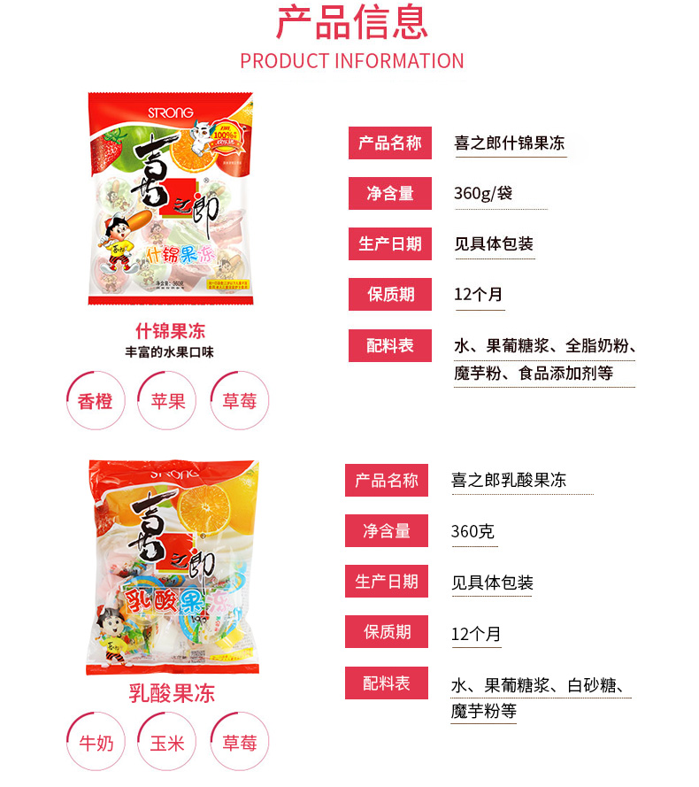 • 商品名称:喜之郎什锦果冻360g*5袋乳...