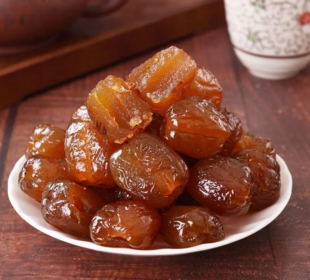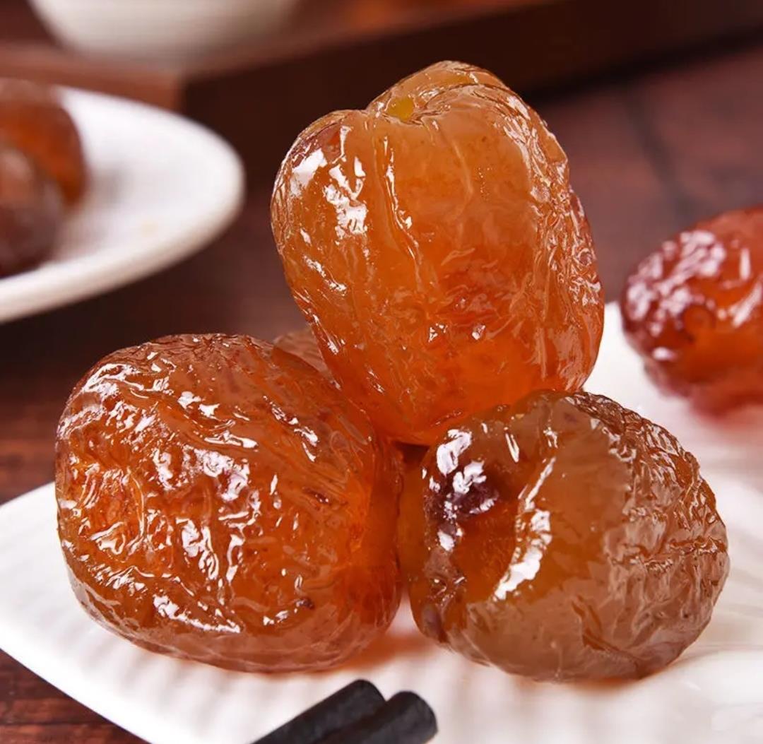 蜜枣属于干果类,用割枣机,把大青枣周身割一次,使得容易吸糖,然后放入锅中用白糖煮,晒干,就成了平时吃的蜜枣。也可用于泡茶,有一股枣的清香。