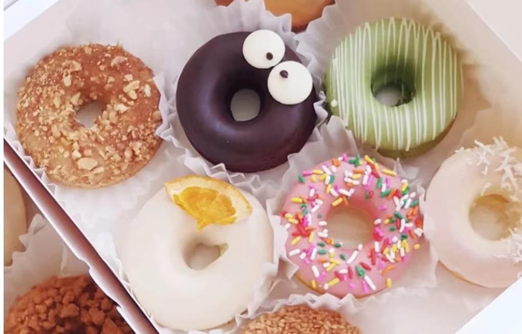 yuzebakery doughnut:两种口味,一个是芝士味淋面,另一个是水蜜桃淋面,混合巧克力制成甜甜圈淋搭配下边可口的蛋糕圈,香甜好滋味
