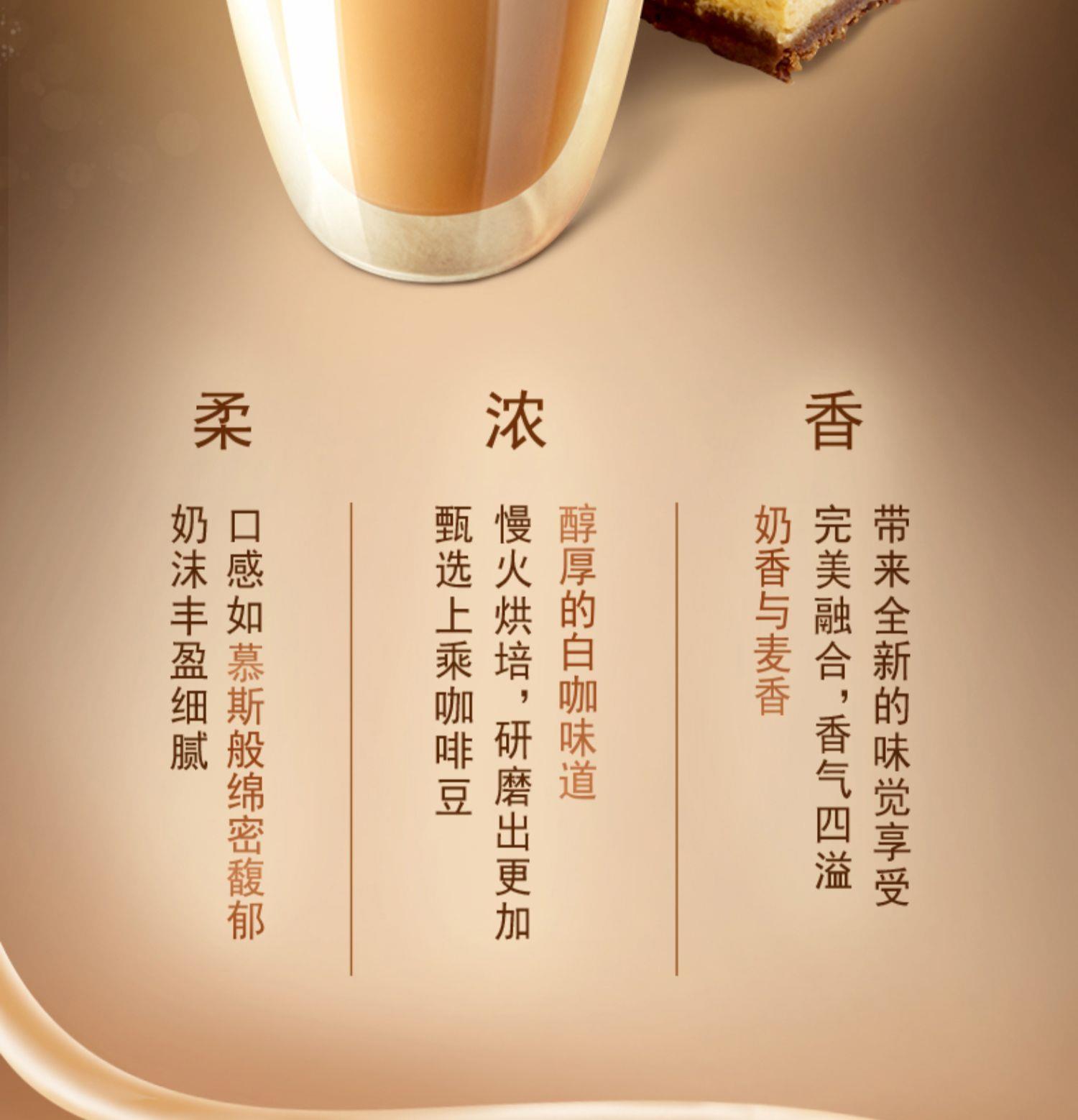 这款产品主要配料比较简单,有咖啡、奶和糖这三种,而且添加量都是一致的,口感比较均衡。喝起来咖啡加奶的香味,并且伴随淡淡的甜味,带给味蕾不同的刺激感。很多人都反映这款咖啡很好喝,很香。