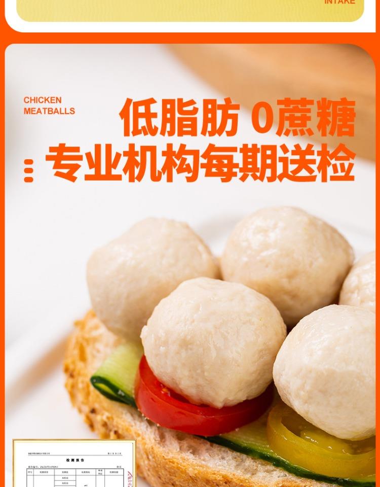 储存条件:常温单件净含量:48g品名:低脂鸡肉丸