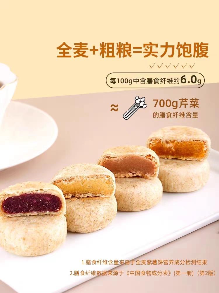 1、膳食纤维含量来自于全麦紫薯饼营养成分检测结果