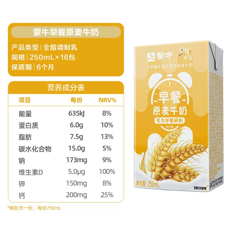 • 商品名称:蒙牛早餐奶麦香味利乐包25...
