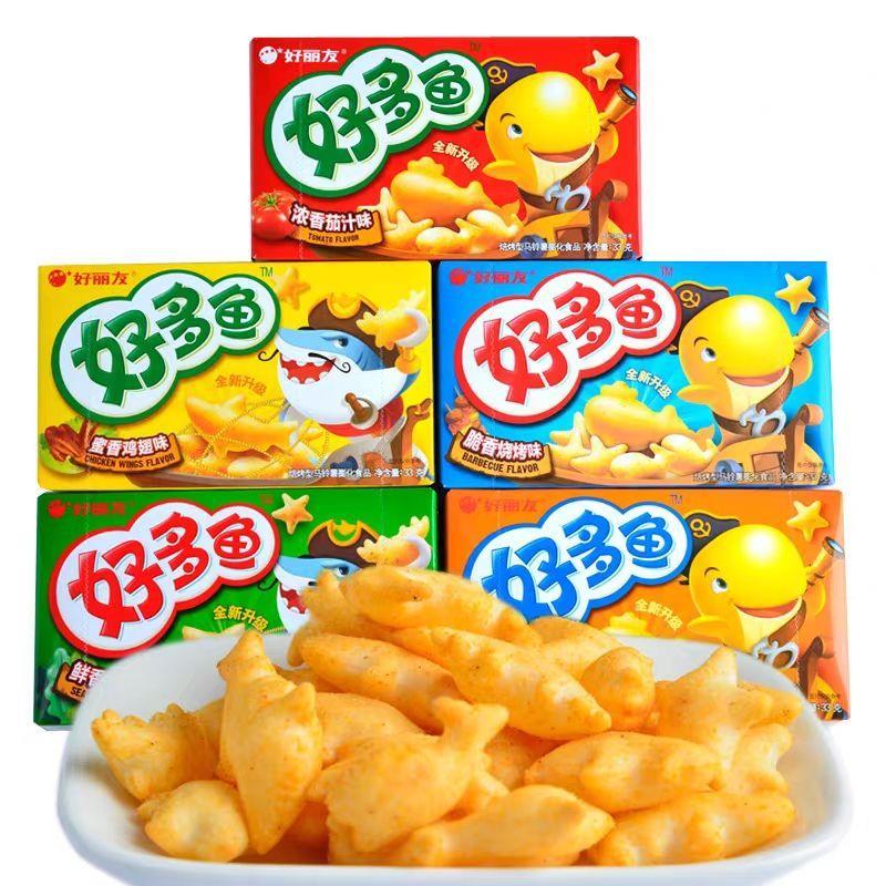 好丽友好多鱼33g饼干小朋友团购休闲膨化零食小吃整箱烧烤番茄