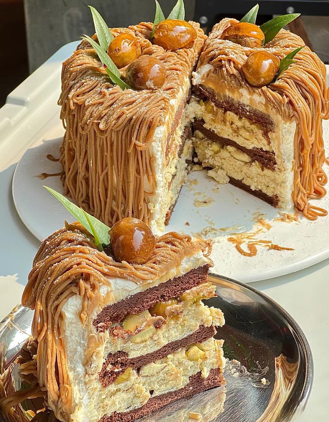 松软咖啡戚风蛋糕胚搭配栗子泥、咖啡奶冻还有栗子奶油,四重超丰富的口感,一口一口停不下来~真的超级好吃!'再搭配一杯栗子拿铁,更是快乐加倍!!