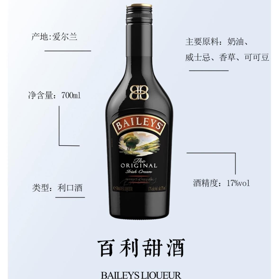 丝丝顺滑,浓醇百利。香醇丝滑、口感丰富的百利甜酒,是悦己时的惬意佳选,是烘焙时的甜蜜灵感,还是欢聚时的加氛担当,乐享百利,欢享时光。百利甜酒由蒸馏师挑选,陈年三年以上的爱尔兰威士忌,混合爱尔兰奶油,经由独特工艺与精心调配,带来曼妙的味觉体验。