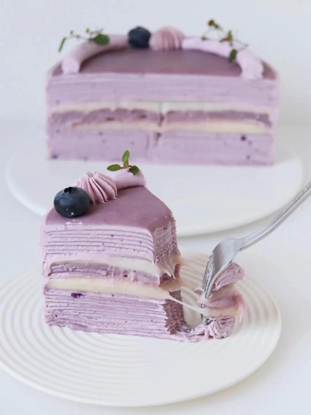 芋泥奶油与紫薯芋泥酱的完美结合,中间加入芋泥椰奶冻,清新的椰奶香气和QQ弹弹的口感,让整个千层口感更佳丰富多样