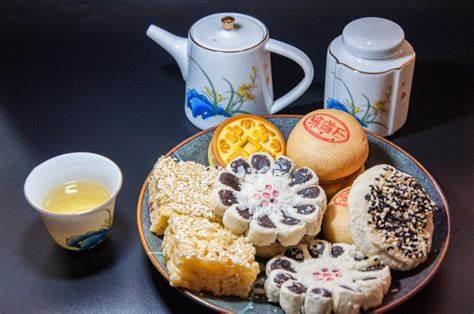 大唐盛世点心系列2,有玫瑰饼,椰蓉饼,肉松饼,桂花饼共四种点心