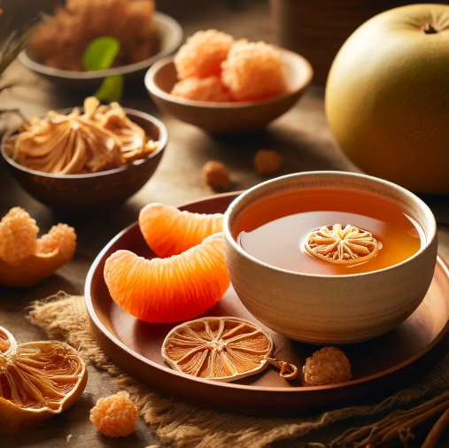 由新鲜采摘的柚子剥落柚子皮后晒干制成
