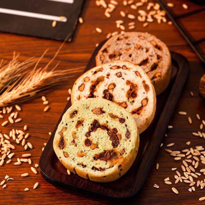 原味果仁:小麦粉、全麦粉、[红豆、核桃仁、葡萄干、红枣、黑芝麻(综合果仁添加量≥47%)]、饮用水、全脂乳粉、全蛋液、海藻糖、食用油脂制品、食品加工用酵母、食用盐、甘油、食用香精、丙酸钙、脱氢乙酸钠
