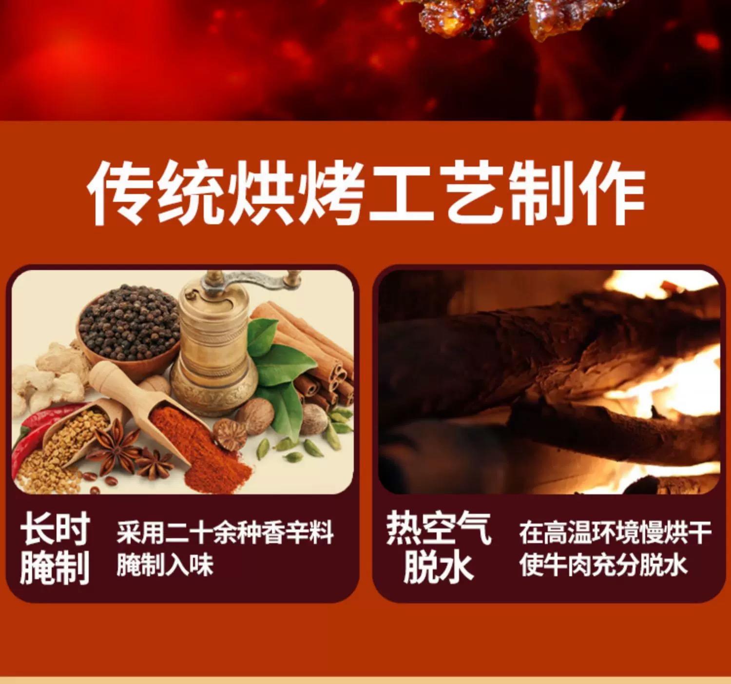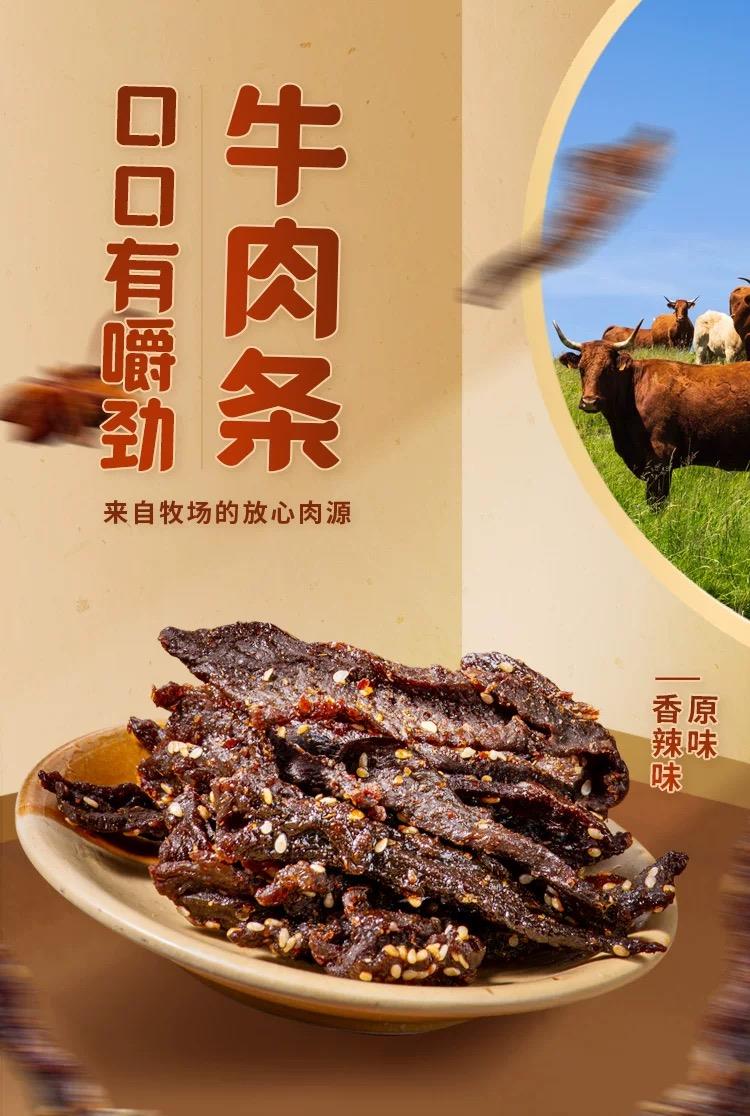 耐嚼设计更过瘾:每条牛肉干均经过精细切割与慢烘制作,耐嚼有劲道,充分感受肉香与调料的完美融合。