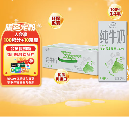 商品名称:伊利 纯牛奶200ml*24盒/箱 全脂营养乳蛋白 环保装 10-11月产 纯牛奶200ml*24