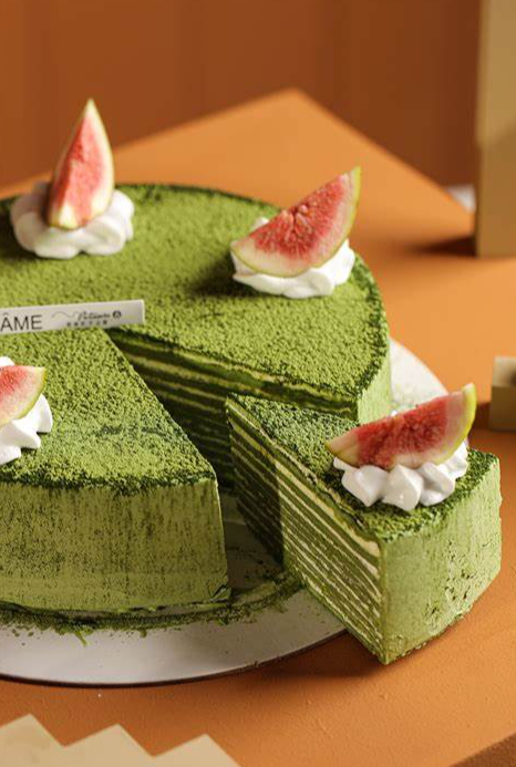 甜点。选用优质抹茶粉,以其特有的清新茶香为基底,再以鲜奶油精心调配,赋予蛋糕丰富的口感。