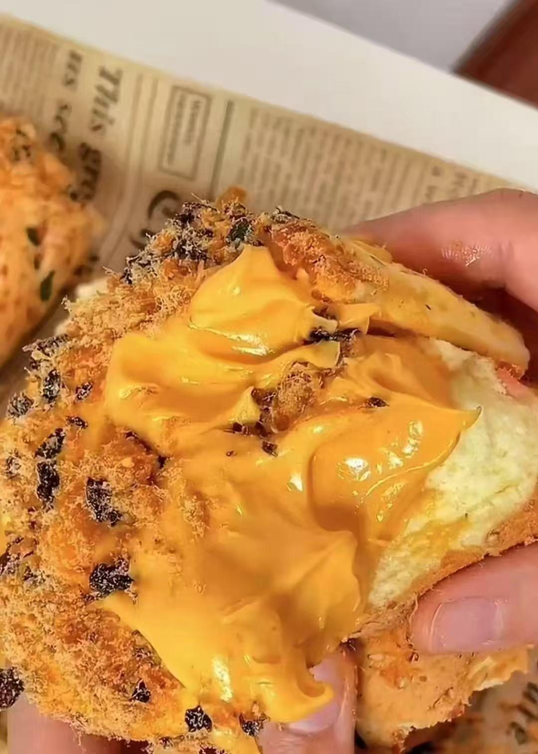这款肉松小贝以其松软的蛋糕体和丰富的肉松馅料而深受欢迎。蛋糕体烤制得恰到好处,口感松软细腻。肉松馅料饱满,搭配特制的酱料,味道浓郁而不腻。每一口都能感受到肉松的鲜美和蛋糕的香甜,是休闲时光的美味伴侣。