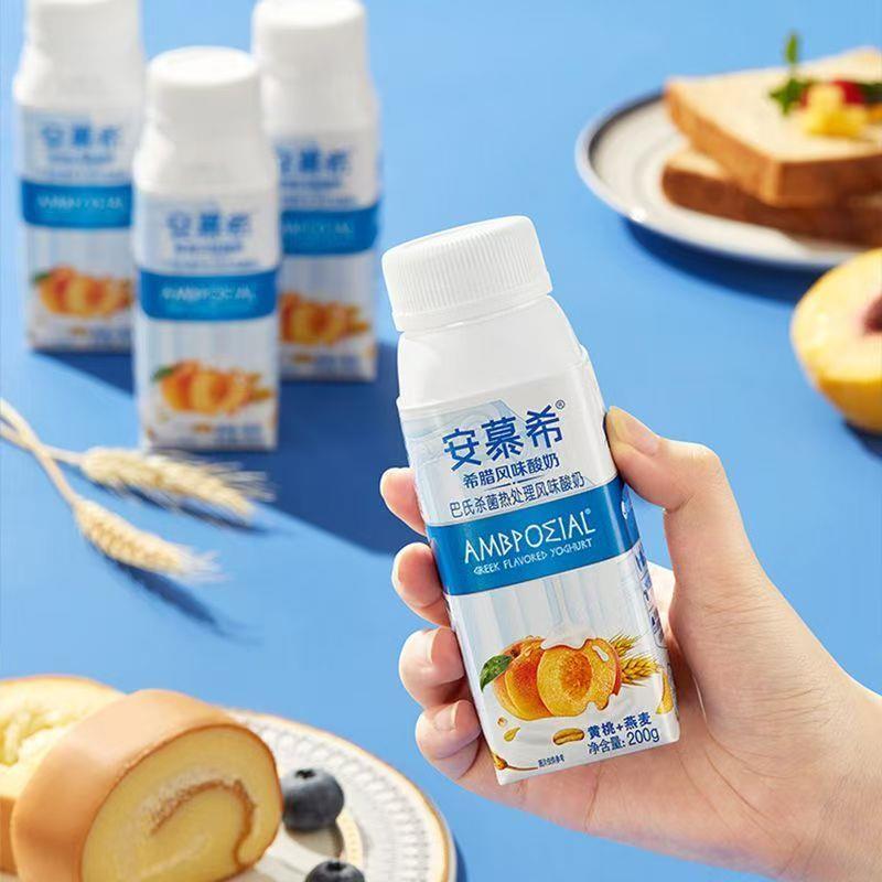 伊利安慕希酸奶黄桃燕麦希腊风味8瓶装